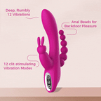 This Rabbit is ideal for those looking to incorporate anal stimulation into their pleasure routine. It features a G-spot-shaped insertable arm and a strong bunny stimulator for the clitoris but that's just the beginning! The flexible beads can give you delicious teasing around your rim while providing shallow penetration. Or, let the beads vibrate against the extra-sensitive perineum and anal entrance.