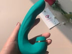 Let this curvy monster satisfy your hot spots with triple stimulating! The textured silicone shaft sends 10-function vibes deep inside for internal thrills, while the other end stimulates your sensitive clit with 5 powerful suction patterns. At the same time, a thumping button on the shaft snuggles up to your G-Spot and drives you wild with 5 speeds of thumping! Combine or play with each function individually to reach your blended OMG's. It's made with premium, phthalate free, body-safe silicone, so you can insert & play without any worries.