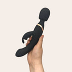 This double-ended toy is a powerful G-spot rabbit vibrator on one end, and a maximum intensity vibrating wand on the other. It has two buttons that control each end independently.